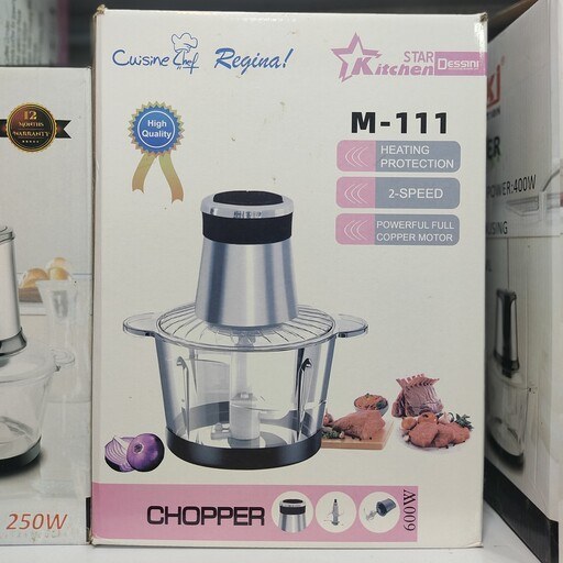 خردکن دسینی مدل M-111 با موتور قدرتمند و تیغه‌های تیز استیل ضدزنگ، بازدهی بسیار خوبی دارد و مواد را در کمترین زمان ممکن خرد می‌کند.